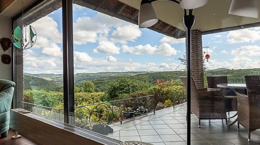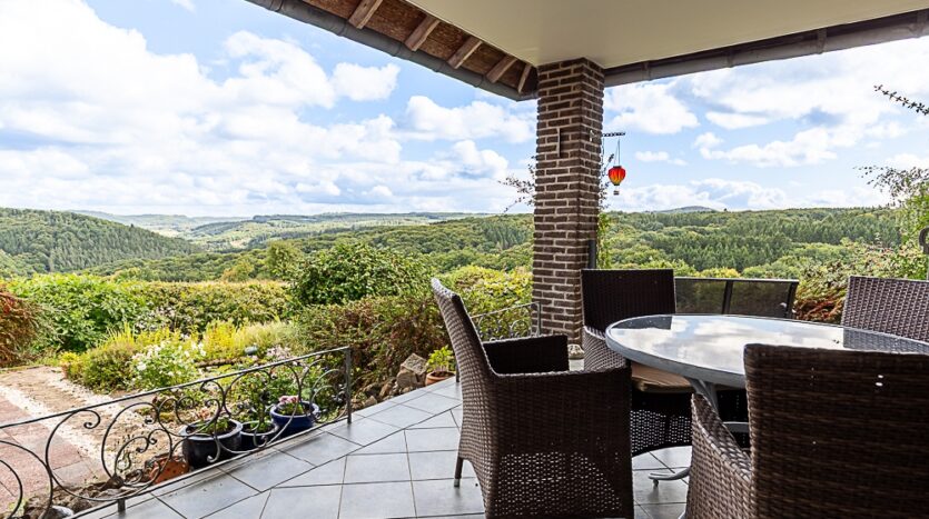 – Overdekt terras op het zuidoosten met panoramisch uitzicht op het omliggende landschap