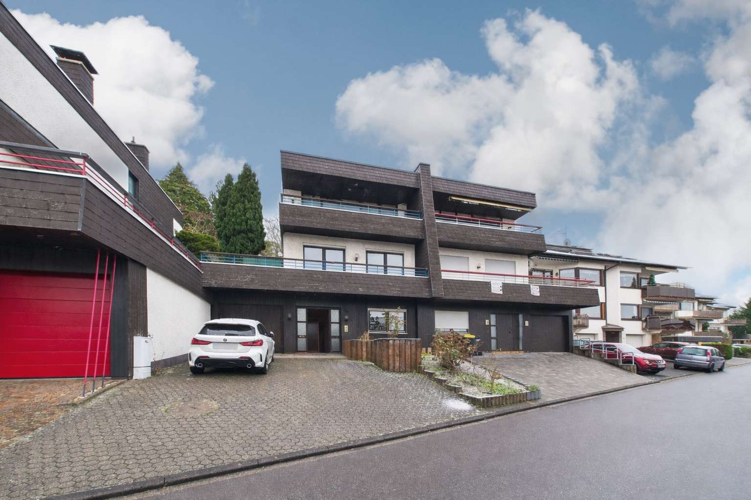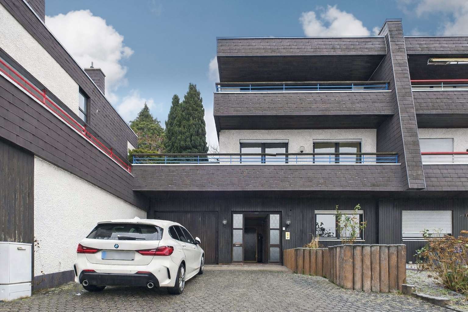Bereits die großzügige Zufahrt vermittelt den hohen Nutzwert der Immobilie: Auf dem Grundstück stehen bequem zwei bis drei Stellplätze zur Verfügung, zusätzlich bietet die Garage Platz für weitere zwei bis drei Fahrzeuge hintereinander – ideal für Familien, Besucher oder eine gewerbliche Nutzung.