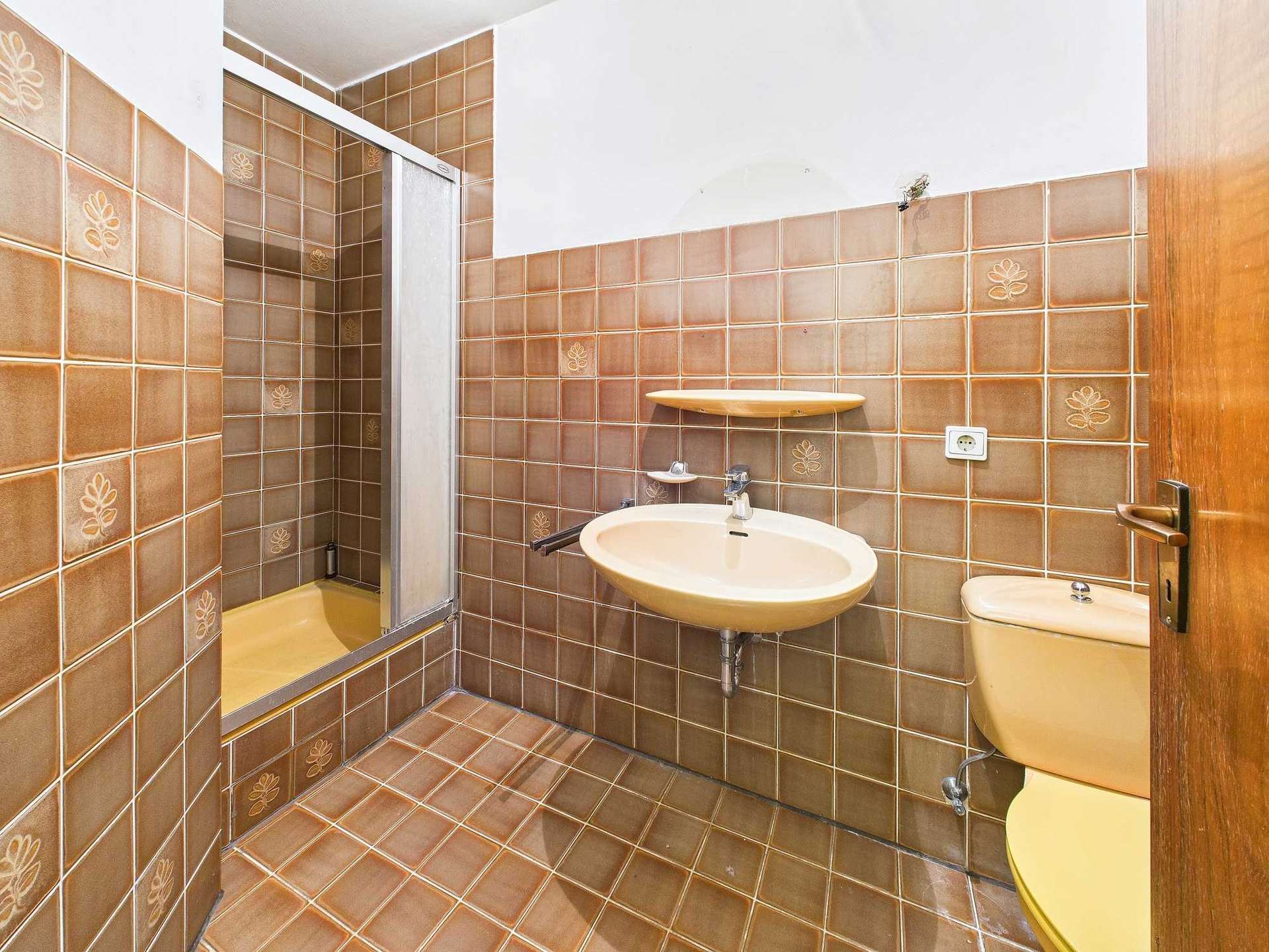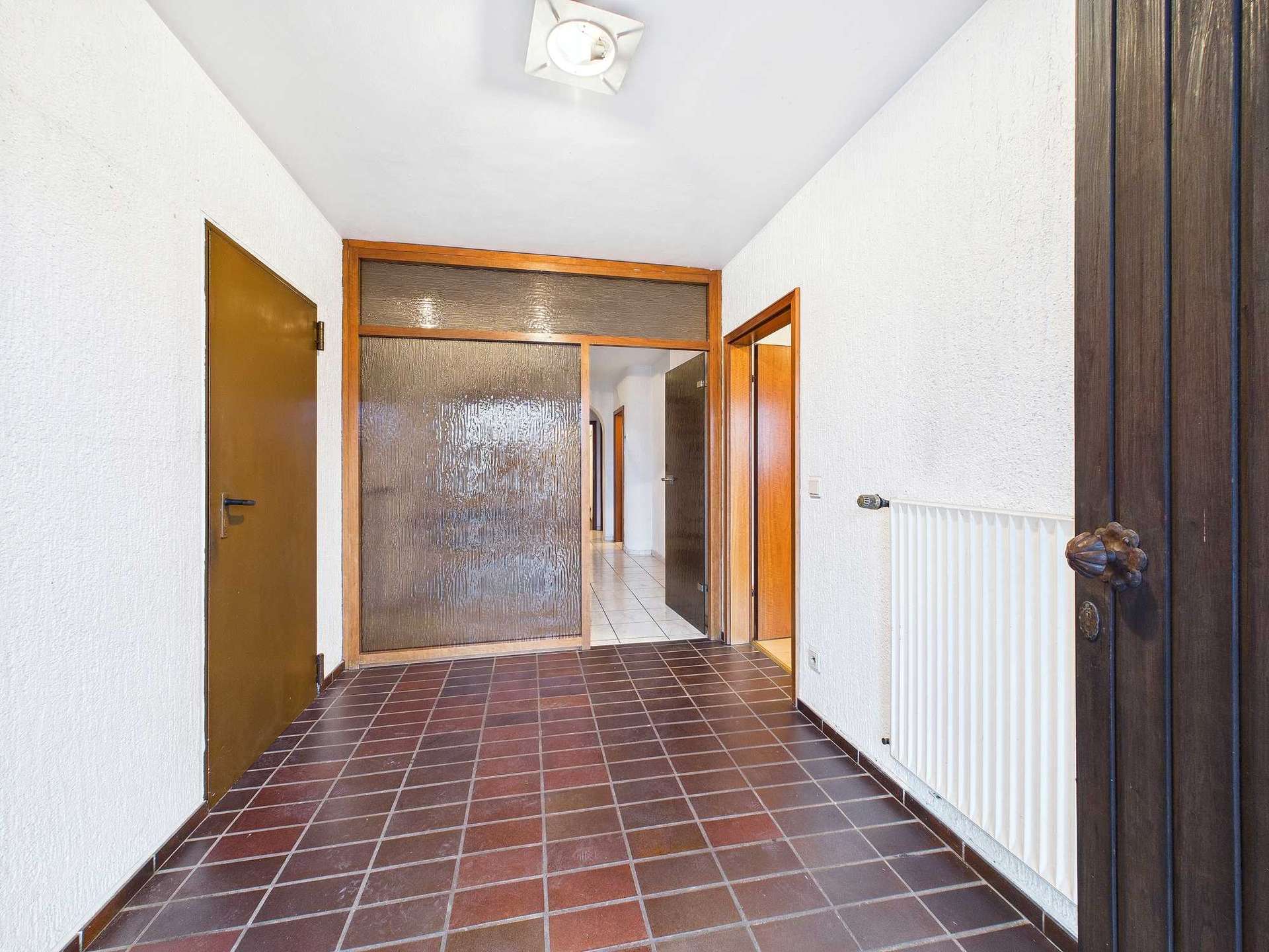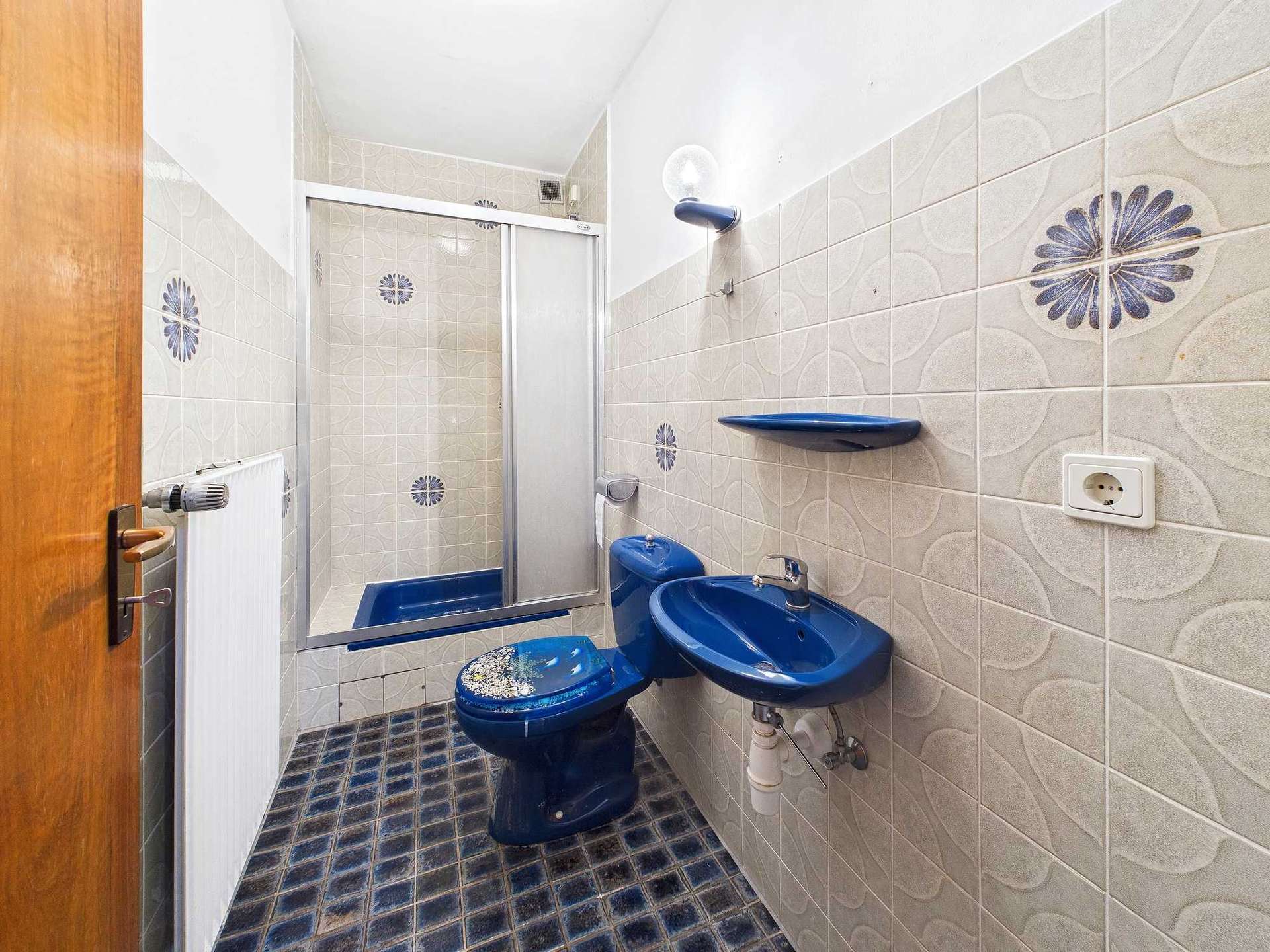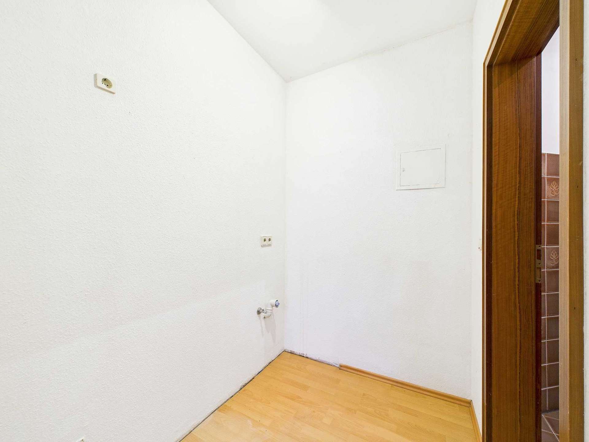 Im Erdgeschoss befindet sich ein vollwertiges 1-Zimmer-Appartement mit Wohn- und Schlafbereich, einer kleinen Küchennische sowie einem innenliegenden Duschbad aus dem Baujahr. Dieser Bereich eröffnet vielfältige Nutzungsmöglichkeiten: Ob als komfortabler Elternbereich mit eigenem Bad, als Einliegerwohnung zur Vermietung oder als Büro bzw. kleine Praxis für Selbstständige – hier lässt sich Wohnen und Arbeiten flexibel miteinander verbinden. Ergänzt wird das Erdgeschoss durch eine Garderobe, einen Kellerraum sowie den Heizungskeller mit Anschlüssen für Waschmaschine und Haustechnik.