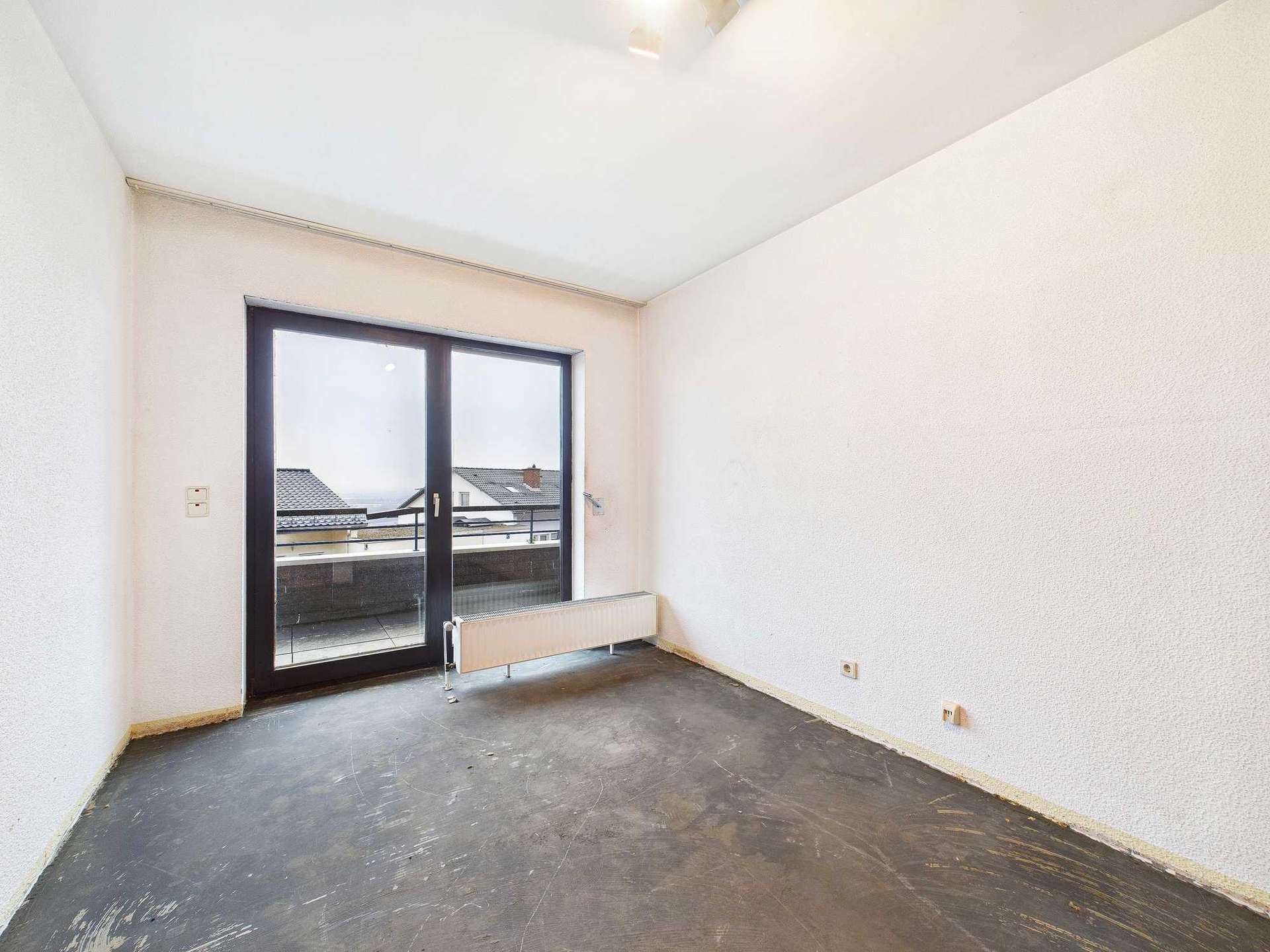 Das Obergeschoss bildet den klassischen Schlafbereich des Hauses. Hier stehen drei gut geschnittene Schlafzimmer sowie zwei innenliegende Bäder zur Verfügung, ebenfalls aus dem Baujahr. Zwei der Schlafzimmer verfügen über einen direkten Zugang zum Balkon, von dem aus sich der beeindruckende Blick in die Weite der Rheintallandschaft genießen lässt – ein besonderer Mehrwert für den Alltag.