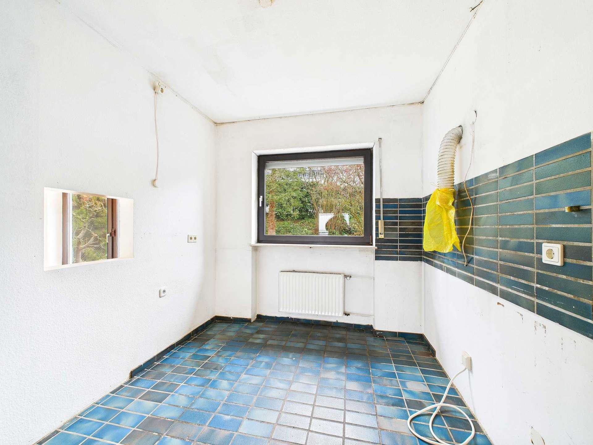 Die doppelt verglasten Holzfenster verfügen über Rollladen und stammen, wie auch die Elektrik und die Wasser- und Abwasserleitungen, aus dem Baujahr des Hauses.