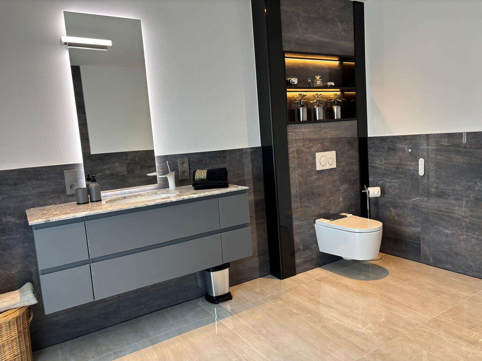 Das Haus verfügt über insgesamt 5 Zimmer, 2 geräumige Schlafzimmer und 1 Kinderzimmer, ein sehr geschmackvolles offenes Wohn-Esszimmer mit Küche und 2 barrierefreie, moderne Bäder. Die Bäder sind sehr großzügig und bieten Platz für weiteren Luxus, wie z.B. eine Infrarotkabine. Die hochwertige Ausstattung lässt keine Wünsche offen. In der maßgeschneiderten Einbauküche mit modernster Gerätetechnik können Sie Ihre Liebsten kulinarisch verwöhnen. Eine Wärmepumpe sorgt für effiziente Stromnutzung.
