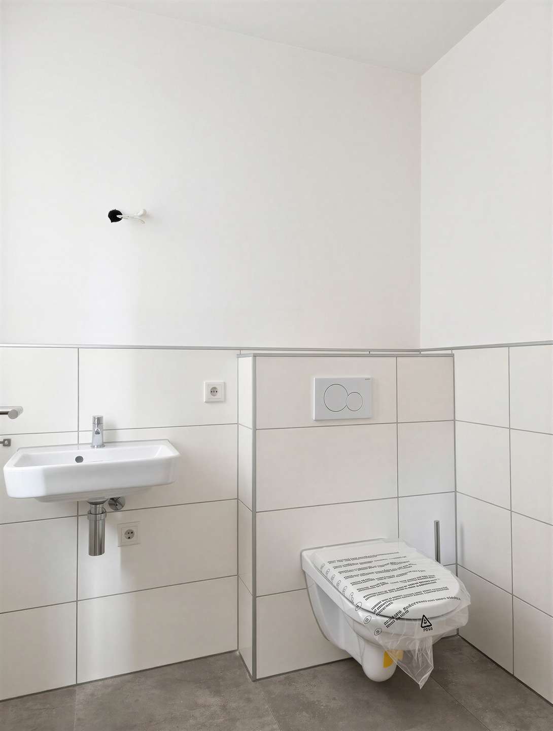 Folgt man dem Flur geradeaus, gelangt man in das Gäste-WC, welches den Grundriss ideal ergänzt.