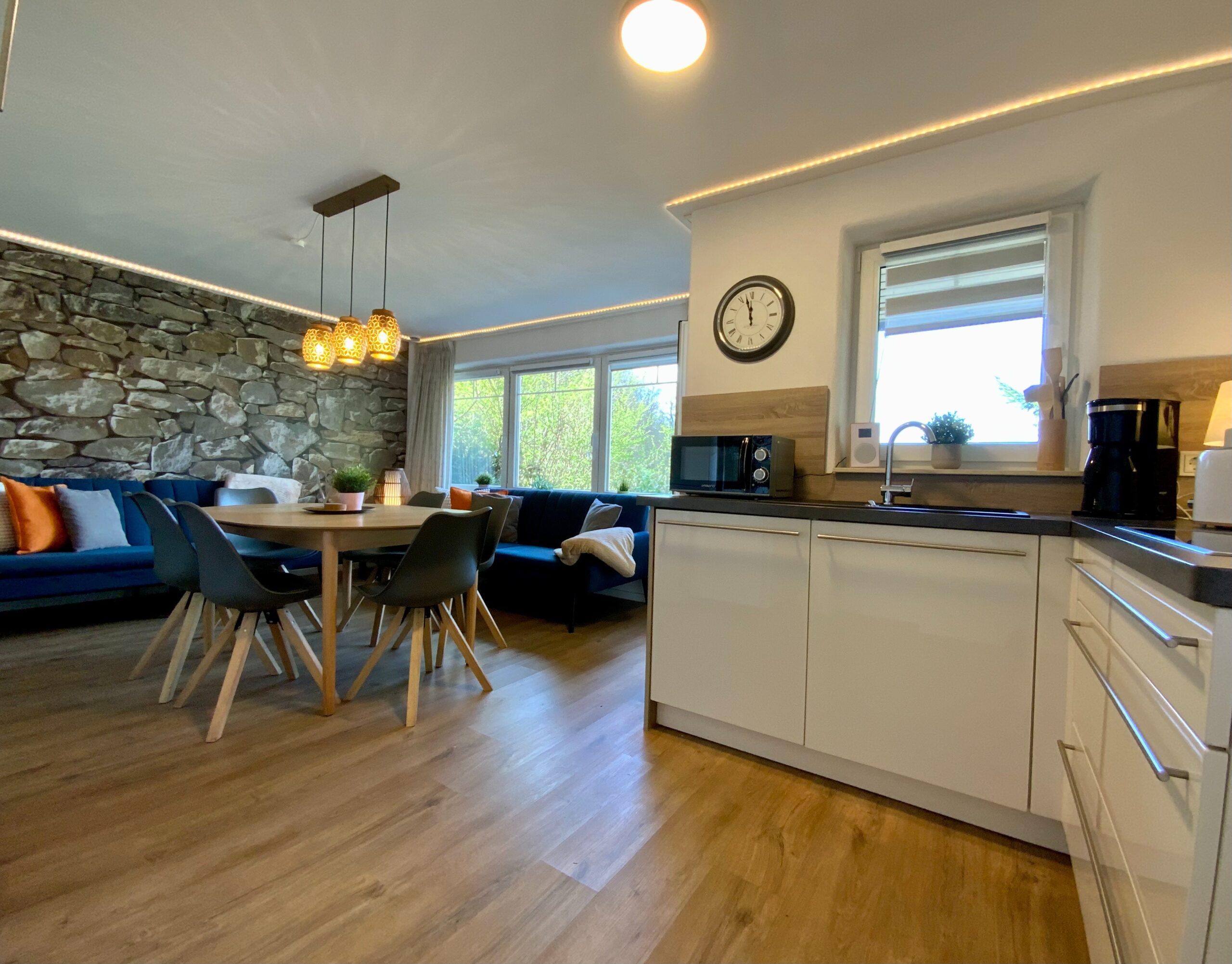 Das Ferienhaus liegt in einer Ortsgemeinde im Eifelkreis Bitburg-Prüm - einem idyllischen Ort im Tal der Prüm, 350 Meter über dem Meeresspiegel und ist ein staatlich anerkannter Erholungsort mit ca. 1050 Einwohnern. Die waldreiche Gegend ist ideal zum Entspannen und neue Energie zu tanken. Man kann beim Wandern oder Radfahren die Natur der urigen Eifellandschaft genießen oder in Ruhe und Abgeschiedenheit die Seele baumeln lassen. Das sehr gut ausgebautes Radwegenetz bietet vielfältige Möglichkeiten für Alt und Jung. Radwege führen u. a. nach Belgien, Luxemburg, Prüm und Neuerburg. Auch um zu Fuß die wunderschöne Landschaft zu erkunden, findet man durch gut ausgebaute Wanderwege ideale Bedingungen. Die Infrastruktur im Ort ist hervorragend. Neben einem Kindergarten und der Grundschule mit Ganztagsbetreuung findet man zahlreiche familienfreundliche Angebote aus Kultur-, Sport- und Freizeit. Ein Freibad lockt in den Ferienzeiten zahlreiche Urlauber in den Ort im Naturpark Südeifel. Im Ort selbst findet man Ärzte, Apotheke, Tankstelle, Supermarkt, diverse Fachgeschäfte und verschiedene Restaurationen. Die Entfernung zu Arzfeld beträgt ca. 10 km, Neuerburg ca. 14 km und Prüm ca. 21 km. Die A 60 nach Trier/Lüttich ist in wenigen Minuten zu erreichen.
