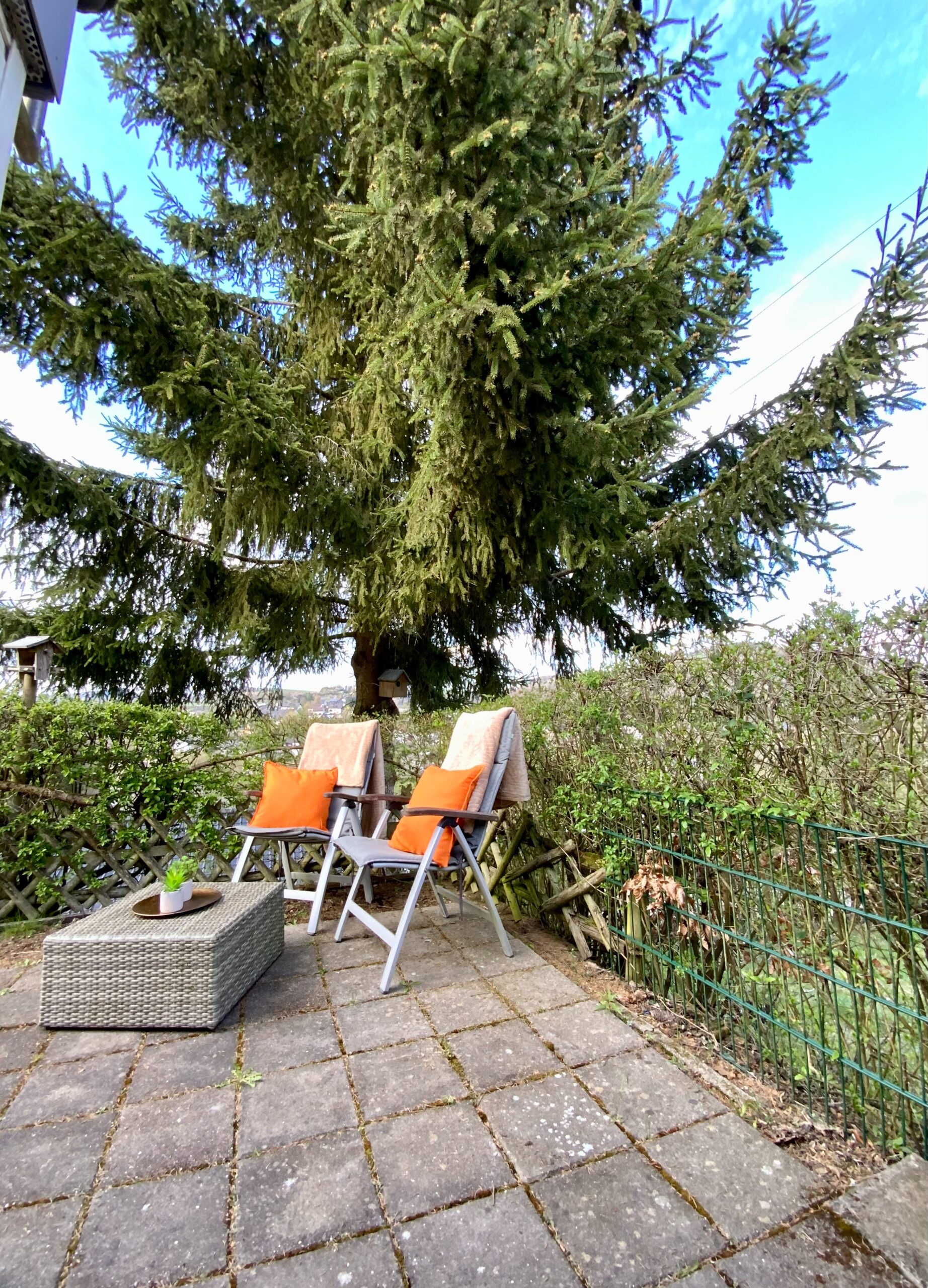 Auf der Terrasse befindet sich eine Lounge Bank mit Tisch und Stühlen um schöne Stunden verbringen zu können.